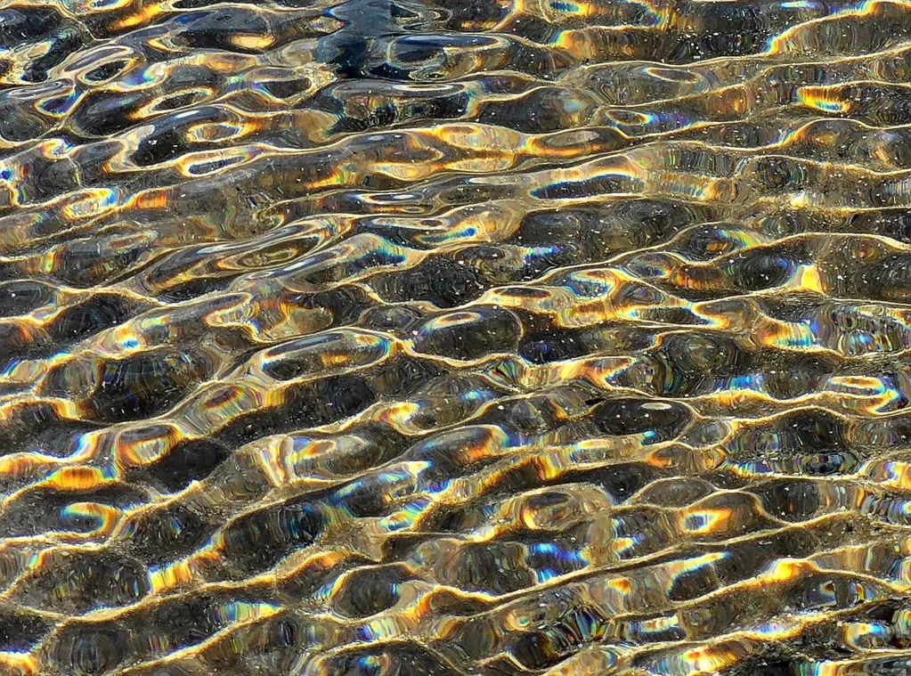 It was taken at low tide and with the camera very close to the water in order to catch the prism effect of the sunlight on the shallows